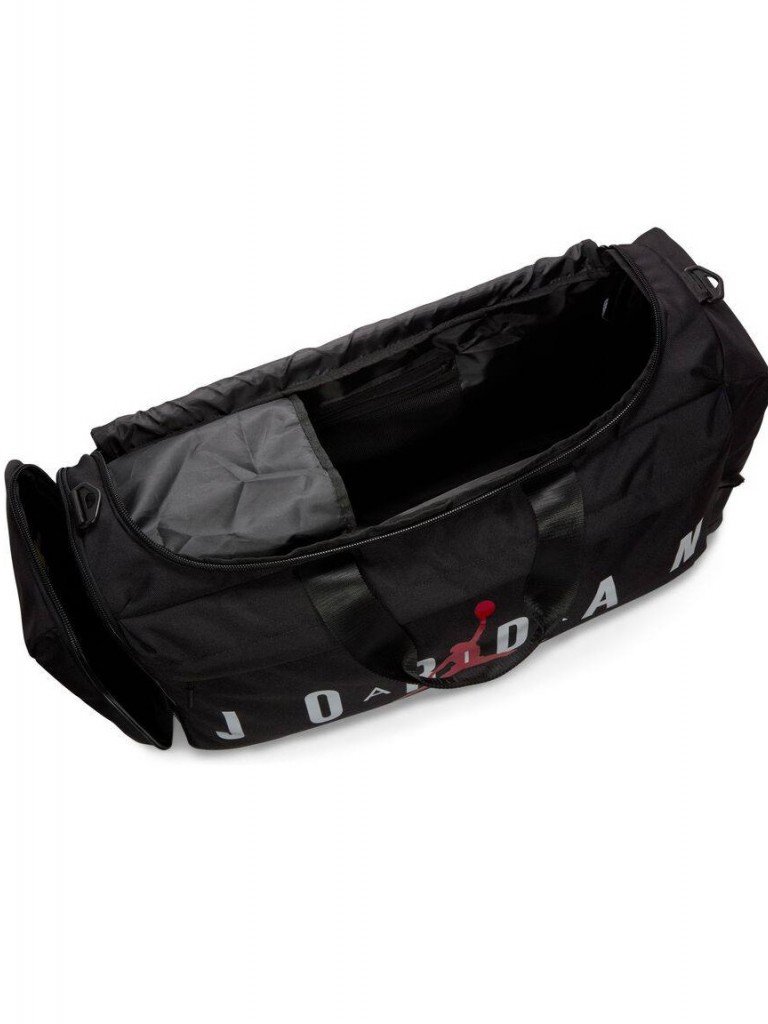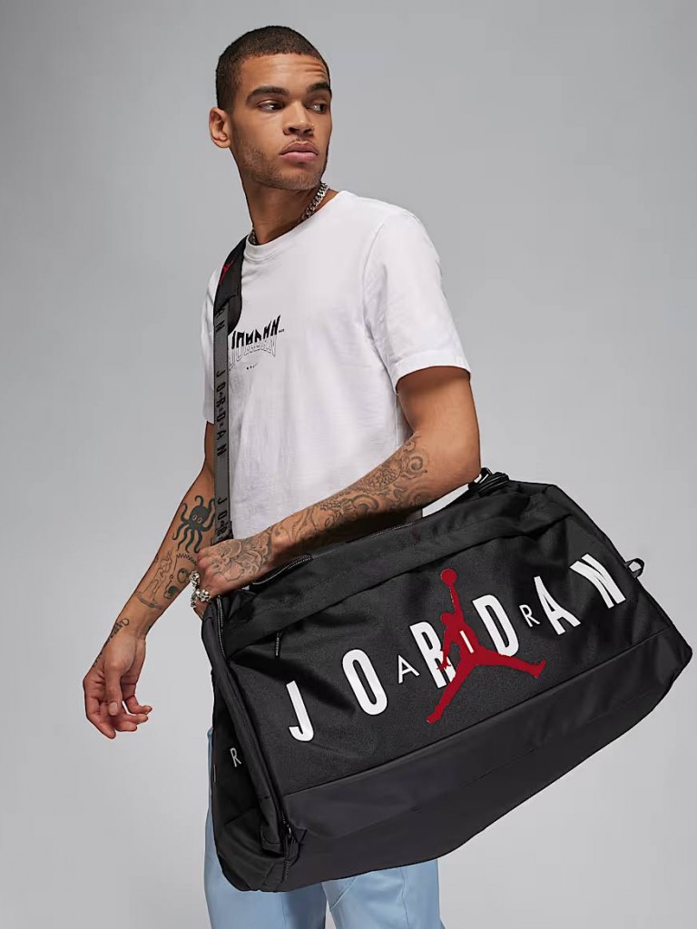 - دافل هوایی جردن دارای یک محفظه اصلی جادار برای همه وسایل شماست تا بتوانید احساس آمادگی کنید. بند شانهای دارای بالشتک باعث میشود حمل آن راحت باشد و جیبهای بیرونی متعدد راحتی را برای گرفتن سریع فراهم میکنند.