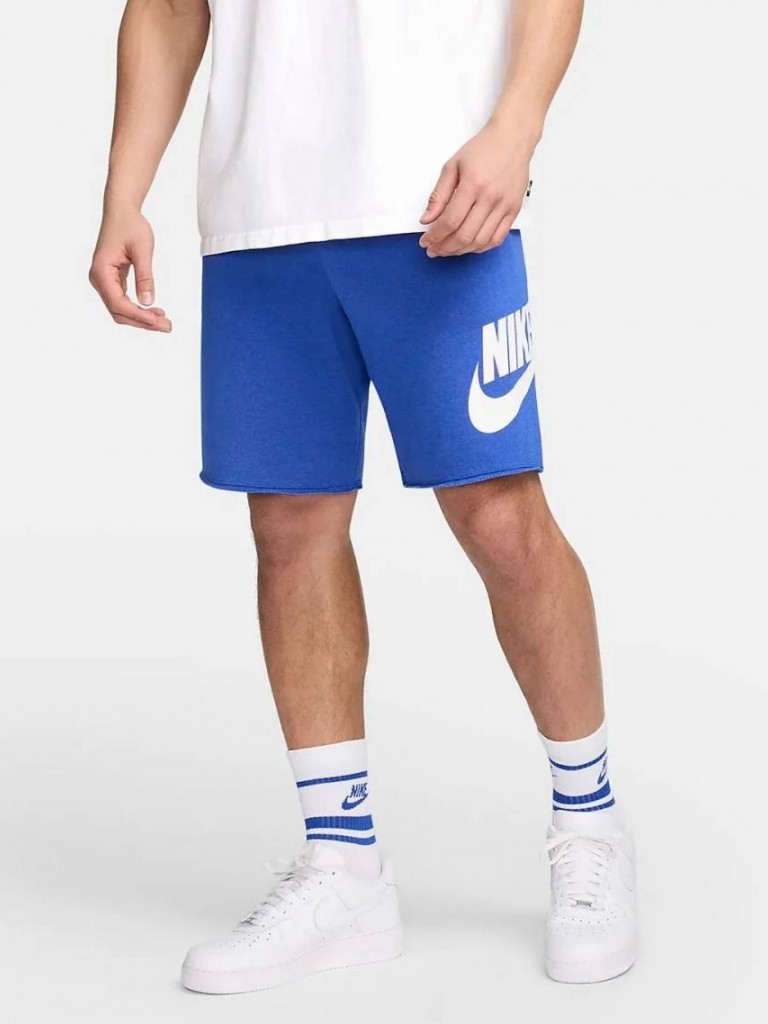 - شورت نایک کلاب فارغ التحصیلان ما که از پارچه تری فرانسوی نرم برای راحتی روزمره و معمولی ساخته شده است، لبههای خام روی دهانههای جیب و لبههای آن برای ظاهری قدیمی و فرسوده دارد.
