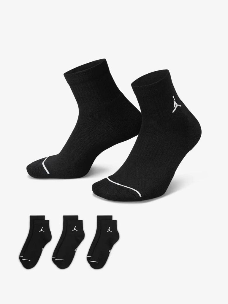 - جوراب مکس مچ پای Jordan Everyday از مواد کششی بافته شده است که به رفع عرق کمک می کند. منعطف و مناسب، آنها از بالشتک بافتنی برای پشتیبانی در مناطق با سایش بالا استفاده می کنند.